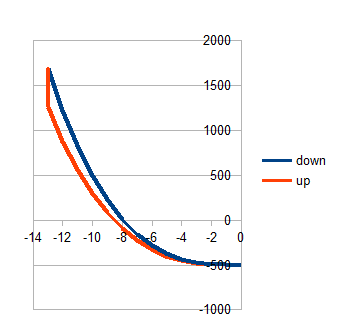 I can make no sense of the explanation. The force is less when moving up because of energy losses in the springs.