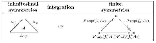 All this is captured by saying that there is a smooth simplicial presheaf ##\exp(\mathfrak{g})## which assigns to an abstract coordinate chart ##U## and a simplicial degree ##k## the set of flat vertical ##\mathfrak{g}##-valued 1-forms on ##U \times \Delta^k##: