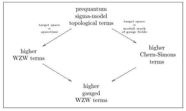 While sigma-models with topological terms are just a special class among all variational field theories, in the context of higher differential geometry this class is considerably larger than in traditional differential geometry. Namely we may regard any of the moduli stacks ##\mathbf{A}_{\mathrm{conn}}## of gauge fields that we discuss in Examples for Prequantum Field Theories I and Examples for Prequantum Field Theories II as target space, i.e. we may consider higher stacky field bundles