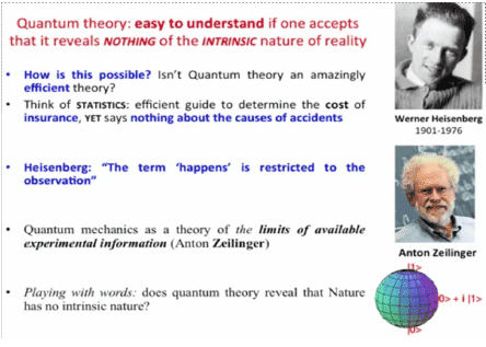 … one of the most important features of the development and the analysis of modern physics is the experience that the concepts of natural language, vaguely defined as they are, seem to be more stable in the expansion of knowledge than the precise terms of scientific language, derived as an idealization from only limited groups of phenomena. To be fair he did not write that in light of future development that shows the exact opposite to an even greater degree than was then known. But even then they knew the work of Wigner and Noether that showed it most definitely is NOT true. It can only be expressed in the language of math.