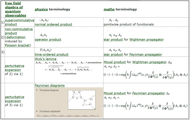 Similarly, the time-ordered products are uniquely fixed on regular observables to be given by the star product of the Feynman propagator (chapter 4, section 2). Again there is a choice to be made as one extends from there to the full algebra of (microcausal) observables, and that choice now is called renormalization (prop. 16.1)