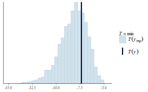 ppc_stat(w, wrep, stat = "mean") ppc_stat(w, wrep, stat = "min")
