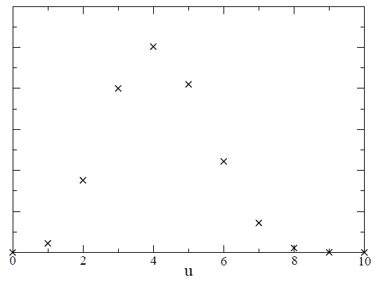 As expected, the hypothesis [itex]u=4[/itex] is most likely, whereas the alternative hypothesis, say, [itex]u=6[/itex], has odds roughly 2-to-1 against.