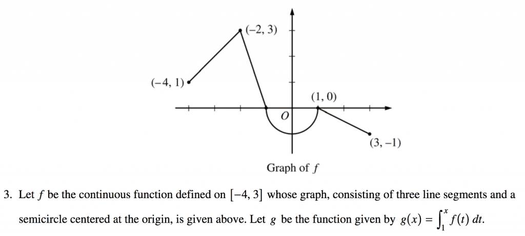 The discussion revolves around solving a problem from the AP Calculus exam involving the integral of a piecewise function. Participants explore various aspects of the problem, including the application of the Fundamental Theorem of Calculus (FTC) and the identification of critical points and inflection points.