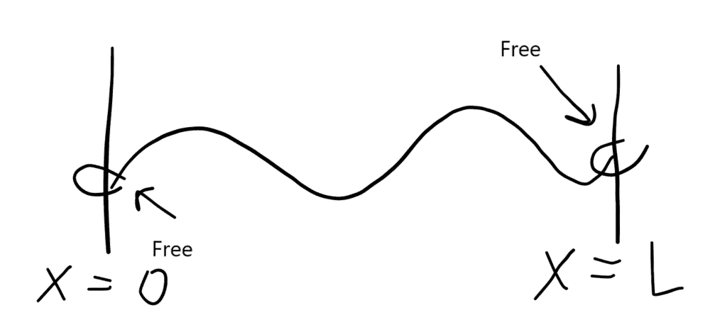 In case fixed at both ends The condition is ##y(0,t) = 0 ## and ##y(L,t) = 0 ##