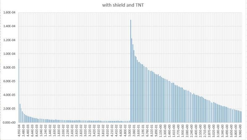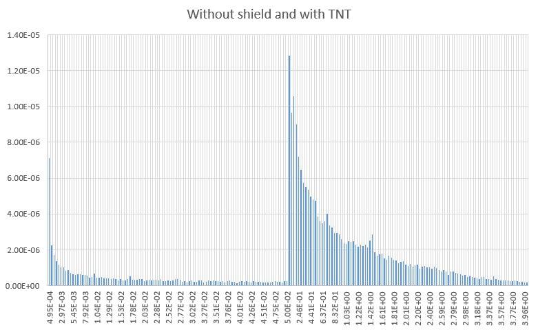 I want to see the change in the flux with and without the TNT, but in the output flux doesn't change. It gives me 1.5*10^-3 with the TNT and 1.49*10-3 without it. I cannot understand what's the reason for this output it seems like it cannot see the TNT or it is counting the flux coming from the source not the backscattered.