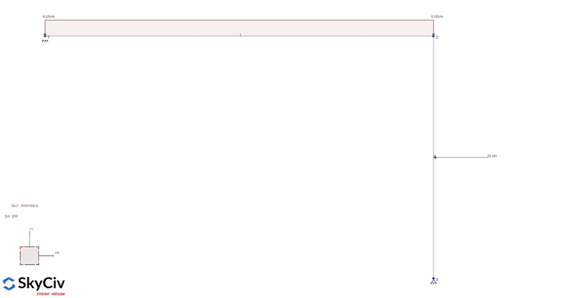 Next, I apply units loads in place of the pinned support that looks like this: