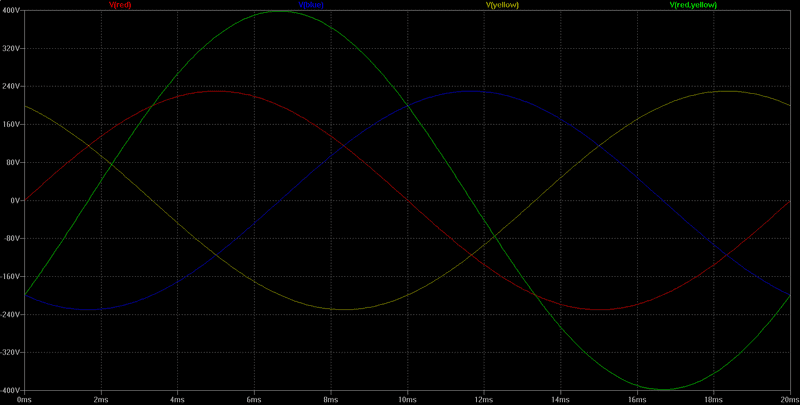 I have been going over the above topic and have a question about the neutral point of a balanced wye configuration. Would the line to line voltage remain constant? I am trying to picture two sine waves 120° apart and it's making me think the Va would be reducing as Vb was increasing at certain points? So would Vline still be alternating sinosoidally?