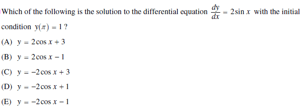 so then we have first $$\displaystyle y=\int 2\sin x \,dx=-2cos x +C$$ if $y(\pi)=1$