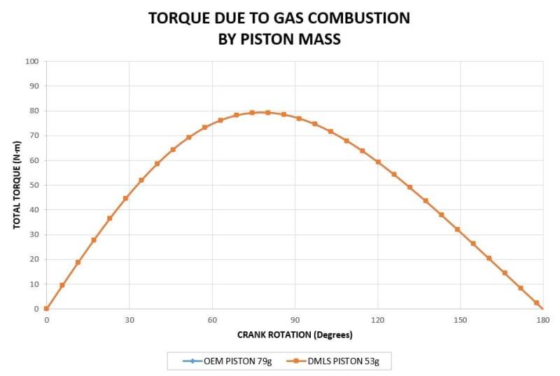 After machining, it is predicted to weigh ~50 grams vs the OEM 79 grams (1970's Honda XR75). The question is, will this lighter piston result in a small power increase as less work done by reciprocating the piston? Theoretically, the rate at which work is done will be increased?
