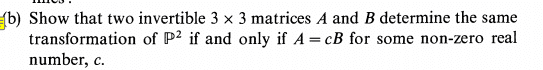 The discussion centers on the concept of invertible transformations in projective geometry, specifically within the context of the projective plane \(\mathbb{P}^{2}\). A user attempts to apply transformations A and B to a vector in the affine plane, leading to confusion regarding the nature of these transformations. It is clarified that the projective plane involves equivalence relations among coordinates, meaning that transformations yield proportional results rather than identical coordinates. This distinction is crucial for understanding the properties of projective transformations.