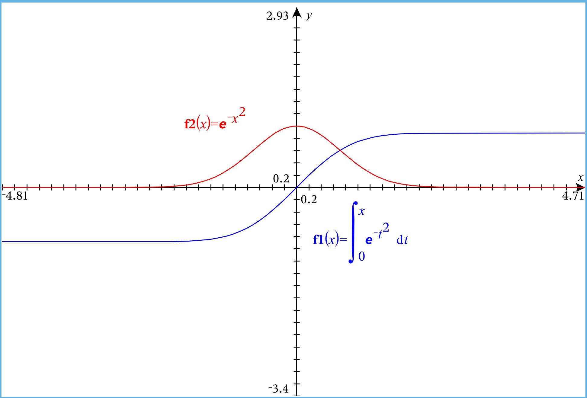 The discussion revolves around the behavior of the function defined by the integral $\displaystyle g'=\int_0^x e^{-t^2}\, dt$ on the interval $0