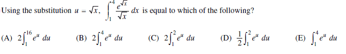 - One participant notes that their calculator returned the expression $\displaystyle2 \int _1^2 e^u \, du$ but expresses uncertainty about the reasoning behind it.