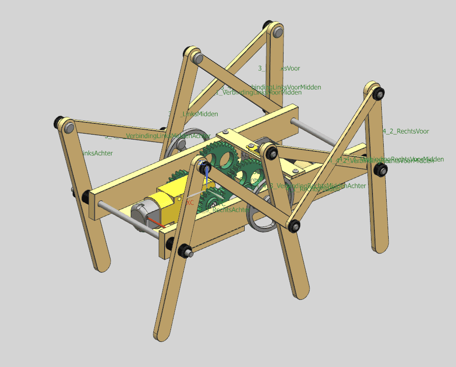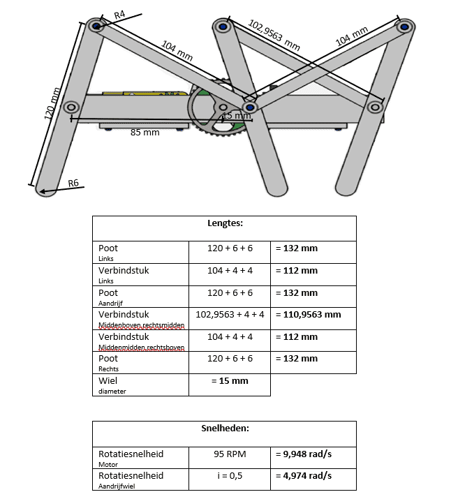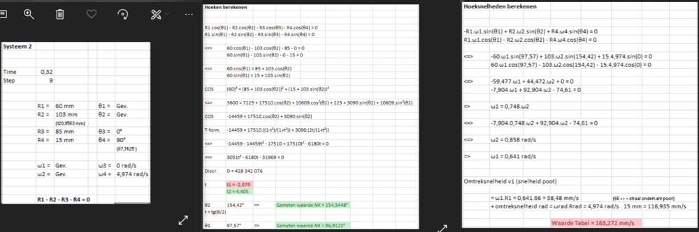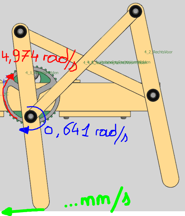 - I want to calculate the x-vector velocity of the middle leg of the walking machine. This requires two angular velocities. The one from the leg (which I've calculated), and the one from the driver (which I've set to a value, see below).