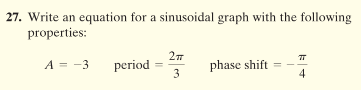 $\textsf{Write an equation for a sinusoidal graph with the following properties:}\\$