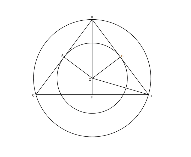 \overline{OF} = \frac{{\overline{XD}}^2 - {\overline{XO}}^2 - {\overline{DO}}^2}{2 \cdot \overline{XO}}