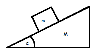 We have an inclined plane with a mass ##M## and an angle ##\alpha## and a box of mass ##m## over it.