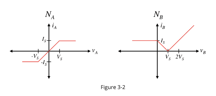 Looking at Fig 3-2, the slopes of the graphs are 1/R, and hence where the slopes are 0, we have infinite resistance, in which case current wouldn't flow through that resistor and hence simplify the circuit. So I was trying to find ways to use that, only I don't really know what the conditions are for ##i_A, i_B, v_A, v_B##, and I don't think I could just randomly choose values I want to work with, could I?