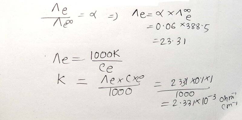 The discussion revolves around the conductance of weak electrolytes, specifically addressing different approaches to solving a problem related to their behavior at infinite dilution. Participants are comparing a personal handwritten solution with a reference book's method and noting discrepancies in the use of certain information.