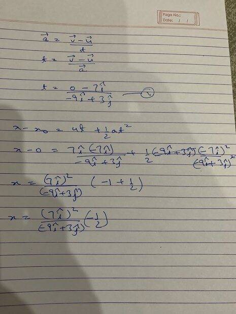 The discussion revolves around a particle motion problem in the x-y plane with constant acceleration. The original poster describes a scenario where a particle starts from the origin with an initial velocity and experiences a constant acceleration, leading to questions about its maximum x-coordinate, velocity, and position vector at that point.