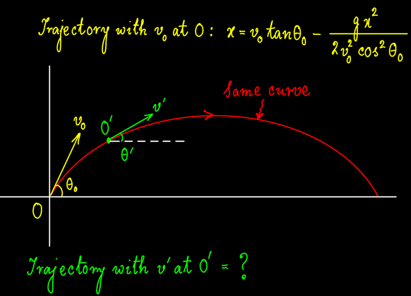 - Participants explore the relationship between the particle's motion and projectile motion, questioning how to express velocity and acceleration in terms of the given parameters. There are discussions about setting time to zero at the origin and the implications of such choices on the equations of motion.
