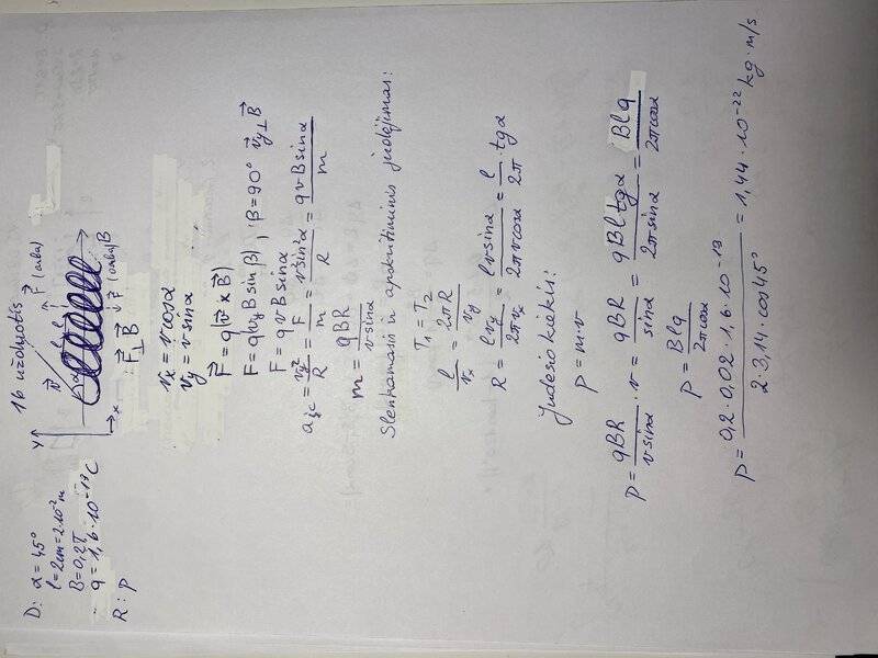 $$p=mv_{x}=mvcos\alpha=\frac{qBRsin\alpha}{v}\cdot vcos\alpha=\frac{qBlsin\alpha}{2\pi cos\alpha}\cdot cos\alpha=\frac{Blqsin\alpha}{2\pi}$$