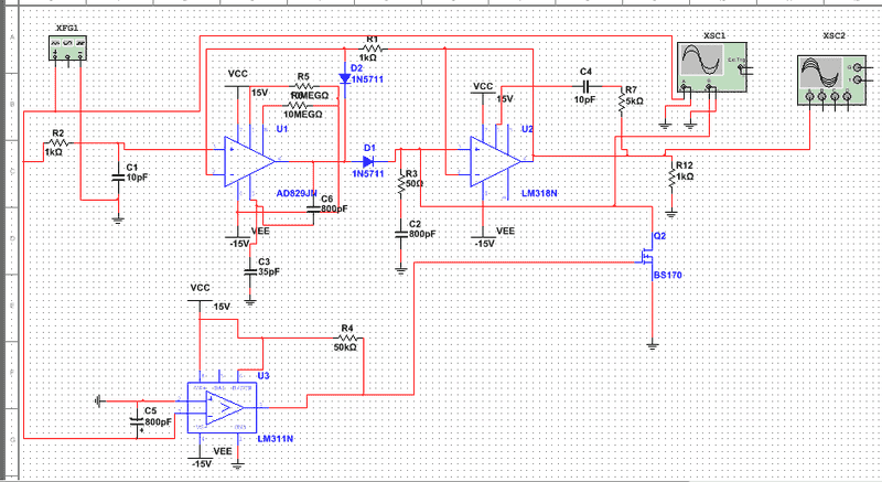 I am building a positive peak detector circuit using AD829 opamps.