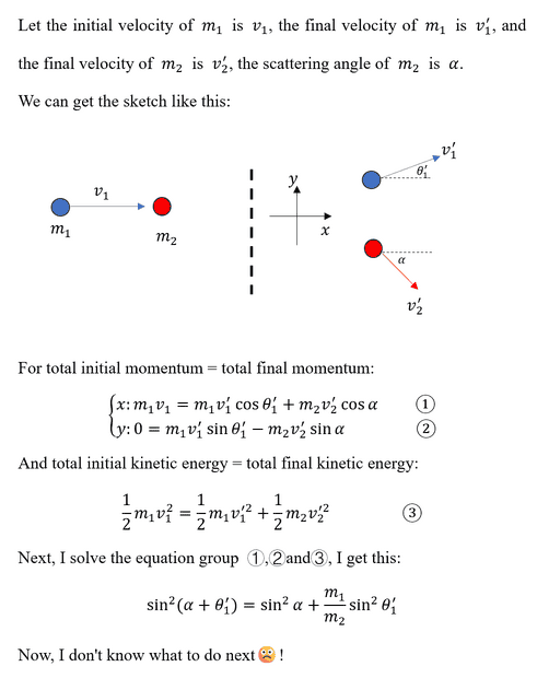 - Participants suggest using the law of cosines to analyze momentum vectors and consider the center-of-momentum frame for establishing angle relationships. Questions arise regarding the validity of certain scattering angles, particularly the implications of a 90° angle in terms of momentum conservation.