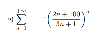 but I also know that for a sequence to be convergent the term an should goes to 0 but the lim(n---->inf) ((2n+100)/(3n+1))^n)=lim exp(n*log(2n+100)/(3n+1))=+infinity