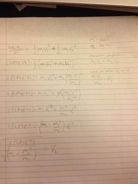 that is how i set it up but after i find the velocity and use it to find another velocity i got it wrong. can someone help me with this? i really appreciate it if you can show me the right way to solve for each velocity of proton and positron.