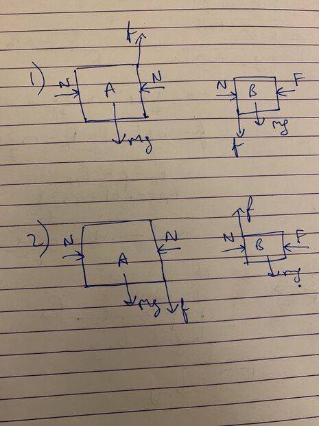 - Consider the figure. The wall is smooth but the surfaces of A and B in contact are rough. Then-