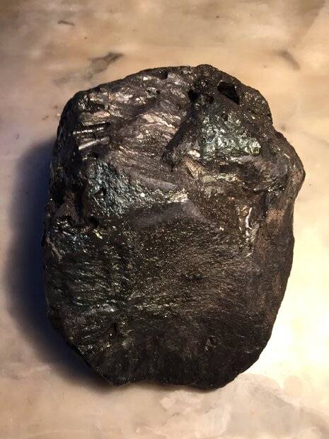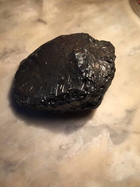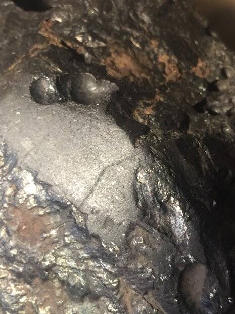 (ii) The rock is ferromagnetic. It measures 16cm x 14cm at widest points and weighs 4.5kg. The bulk density would appear to rule out either slag.