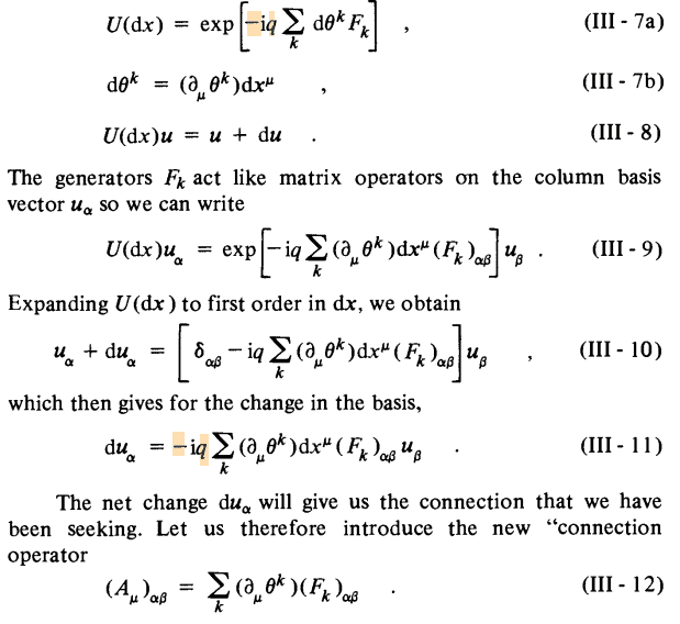 First of all, some notation: ##A## will be the gauge field of the theory (i.e: the 'vector potential' in the case of electromagnetic interactions) also known as 'connection form'.