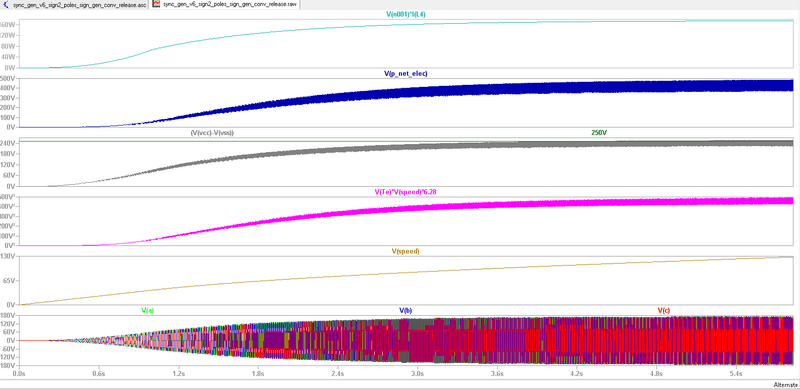 My main question are, is that modelling approach a dead end ? That is, simulating a proper generator in the abc reference frame will be often to slow to reasonably simulate the behaviour of an efficient and physically realisable generator for time periods of several seconds to minutes ?