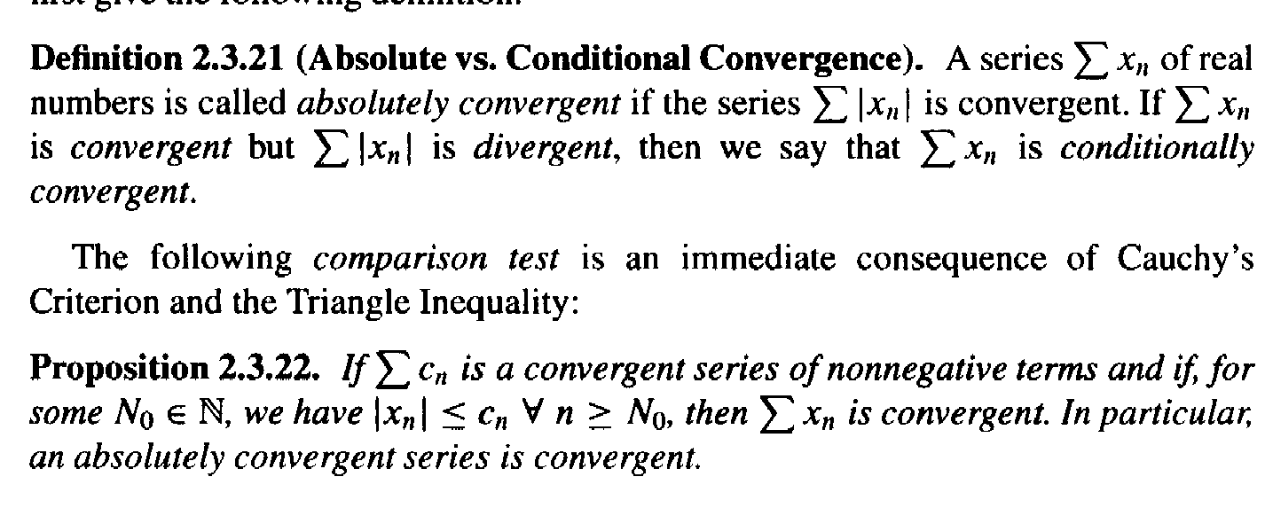 View attachment 9054Can someone please demonstrate (formally and rigorously) how Proposition 2.322 is ( ... as Sohrab claims but does not show ... ) an immediate consequence of Cauchy's Criterion and the Triangle Inequality ...
