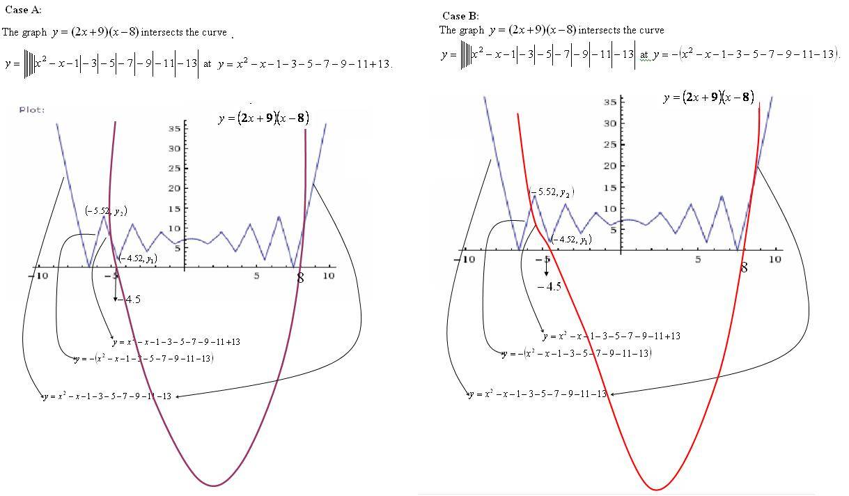 The discussion revolves around solving a complex absolute value equation involving polynomial expressions. Participants explore different methods and approaches to tackle the problem, including graphical analysis and case-based reasoning.