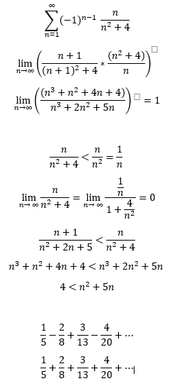 Then I used the comparison test and found that the series was convergent...which I'm really confused about because one can compare n/n2 +4 to n/n2 which is 1/n and is divergent.