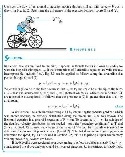 For an unsteady flow, we know that nothing changes at a given location on a streamline with time.Thus when the bicycle was moving with a constant velocity, the air was moving relatively past the rider at a constant velocity (steady flow) .Thus all fluid particles were having the same velocity at all locations along the streamline independent of time.There was no convective or local streamwise acceleration.