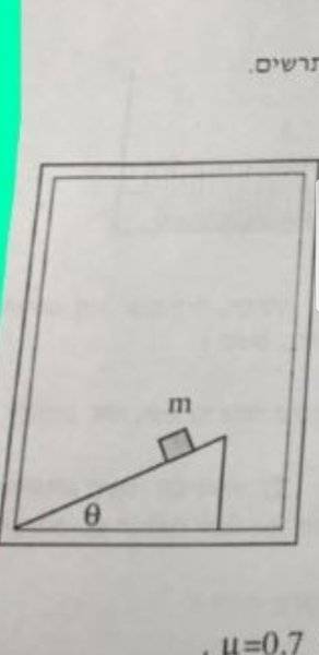 A slope is inside an elevator. A body with the mass of m is on the slope. θ=30°.