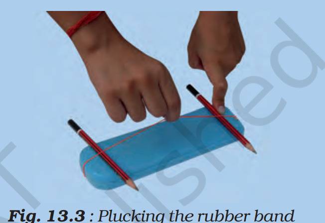 Question:. A rubber band is stretched across a pencil box and two pencils are inserted on the two ends making a contraption that looks like this