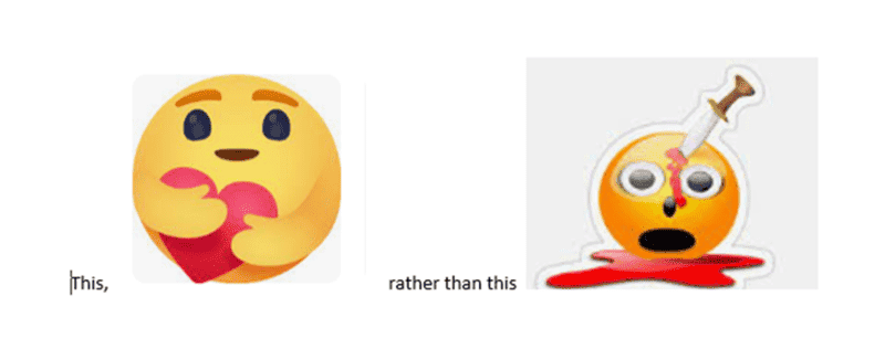 strangerep said:I don't get it. The "Care" emoji looks like someone whose throat and chin has been viciously cut. What's it supposed to be??