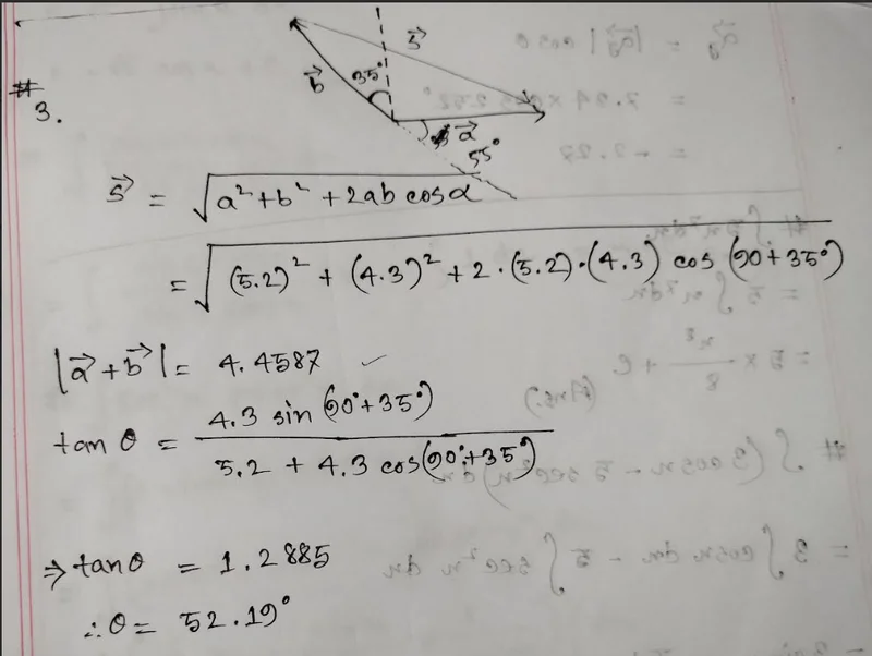 which gives the correct value.Ishfa said:Relevant Equations: s= (a^2 + b^2 + 2ab cos alpha)^1/2