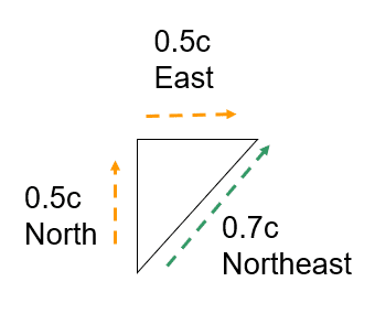 If a ship is moving at 0.5c east relative to an observer, and, in the the ship's reference frame, fires a bullet at 0.5c north, what is the velocity of the bullet relative to the observer?