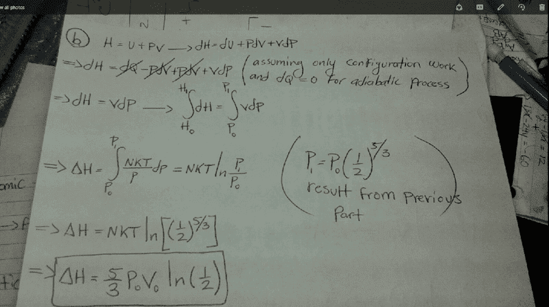 b) the change in its enthalpy during the expansion