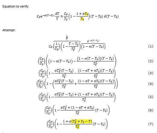 $$dT=\frac{-αT}{c_P β+Vα^2 T} dV$$