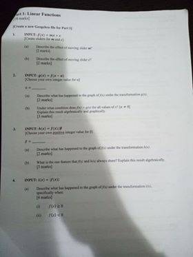 The discussion centers on a request for assistance with an advanced mathematics assignment utilizing GeoGebra. The user expresses urgency in needing help to answer specific questions related to their assignment. Forum members suggest posting clearer images or typing out the questions to facilitate better assistance. Additionally, the thread was relocated to the Pre-University Algebra forum for more appropriate engagement.