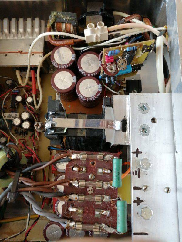 Measuring at the amplifier output there is about 0.8 to 1v parasitic high frequency oscillation, then measuring on the DC supply rails there is also a parasitic ripple around 0.8v amplitude, I cannot read the waveform exactly (my older scope can't focus on very spikey waveforms) but they appear to be small very "sharp" spikes seemingly at or near the switching frequency of the smps (around 50 Khz)