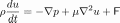 density * flow field time derivative = -pressure gradient + friction (viscosity) + external force (often just gravity)