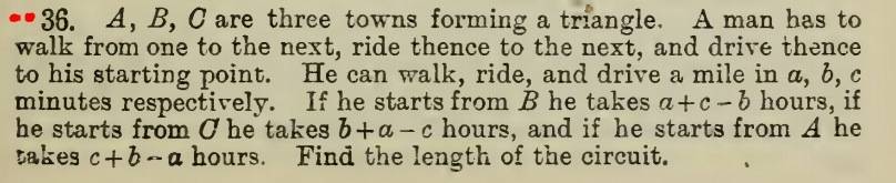 The discussion revolves around solving an algebra word problem related to finding the distance of a circuit based on different speeds for walking, riding, and driving. Participants explore various equations and approaches to derive the distance, while addressing the need for clarity in the problem's conditions.