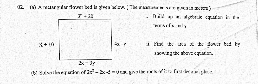 The discussion revolves around solving a system of algebraic equations related to a rectangular flower bed problem. Participants explore various methods for finding the value of x, which is necessary for calculating the area of the flower bed.